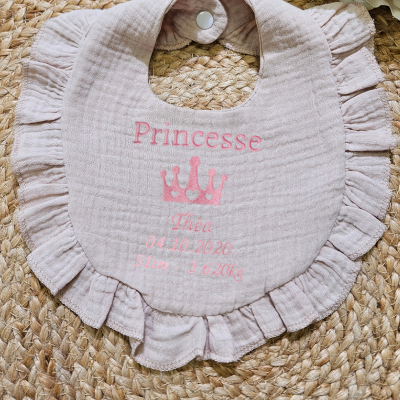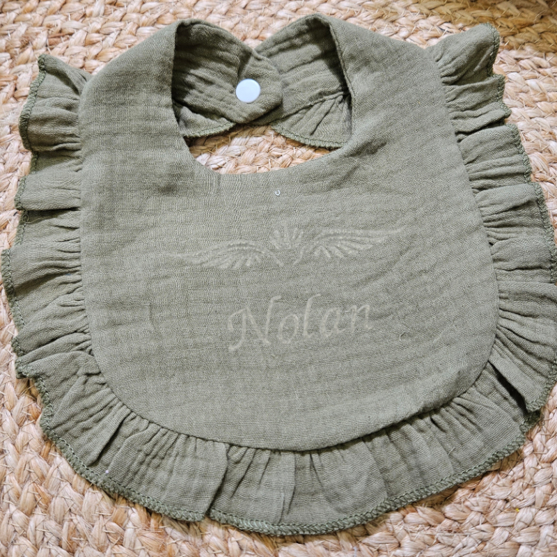 Bavoir bébé en coton de gaze et froufrou - Personnalisable