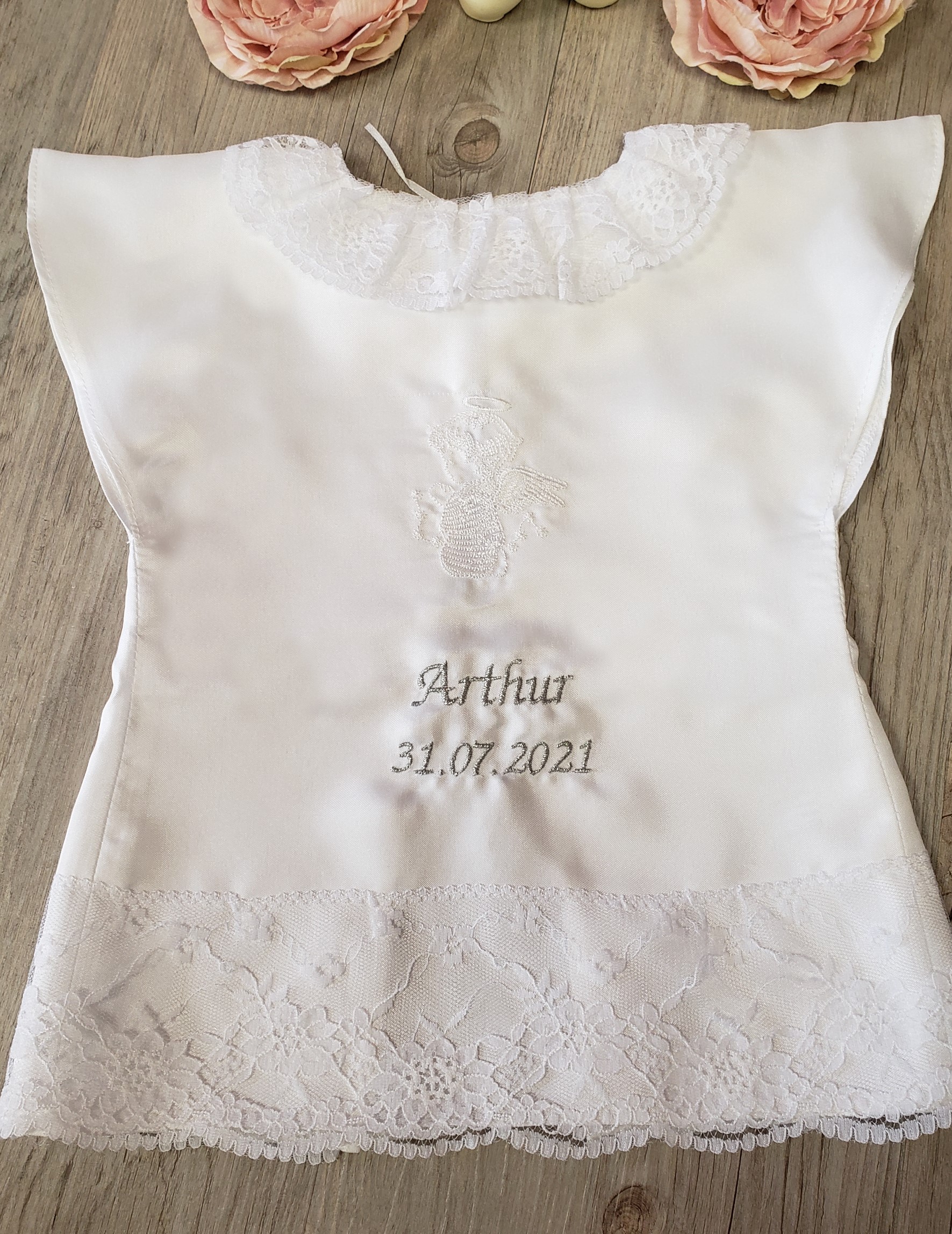 Brassière tunique baptême avec Ange Bleu ciel bébé