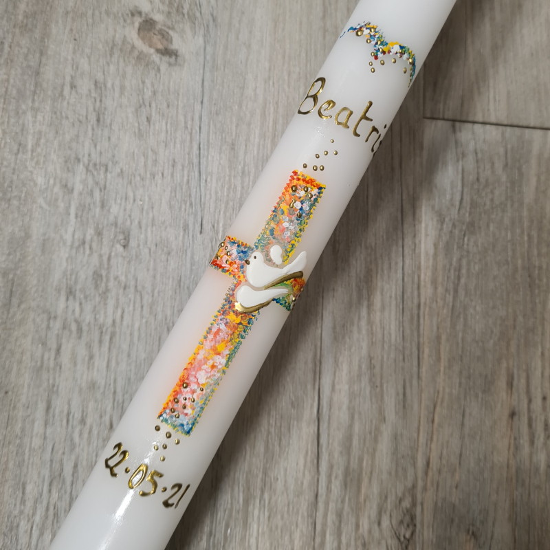 Cierge Croix et Colombe Chrétien - Personnalisable Blanc