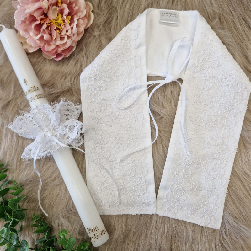 Coffret de bapteme Cierge + noeud + étole en dentelle