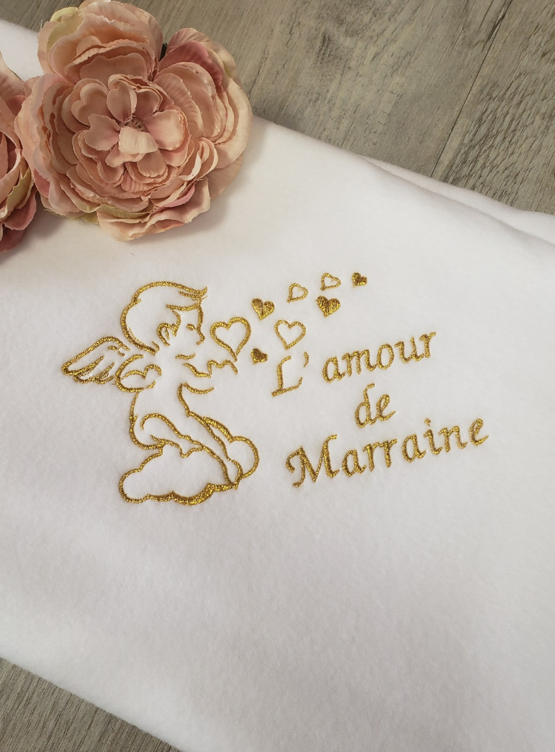 Couverture Broderie Ange et Coeur - Personnalisable