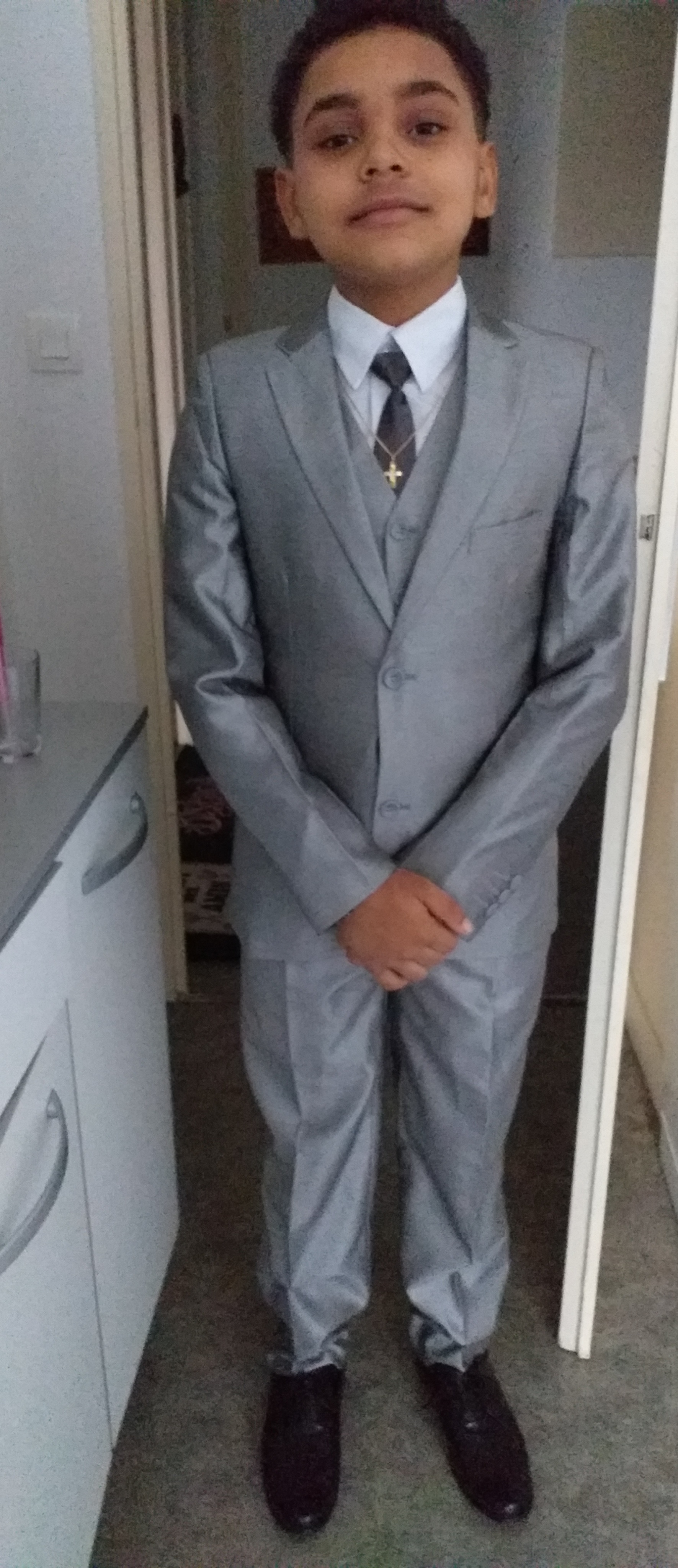magnifique costume complet pour la 1ère communion de mon fils. il était le plus beau. j ai choisi le costume gris celso et les chaussures de cérémonie mickaël : un succès. le tissu est de bonne qualité. la coupe est parfaite; le pantalon était un peu juste, mon fils étant sportif. les chaussures sont très belles. merci à vous. excellent rapport qualité prix.