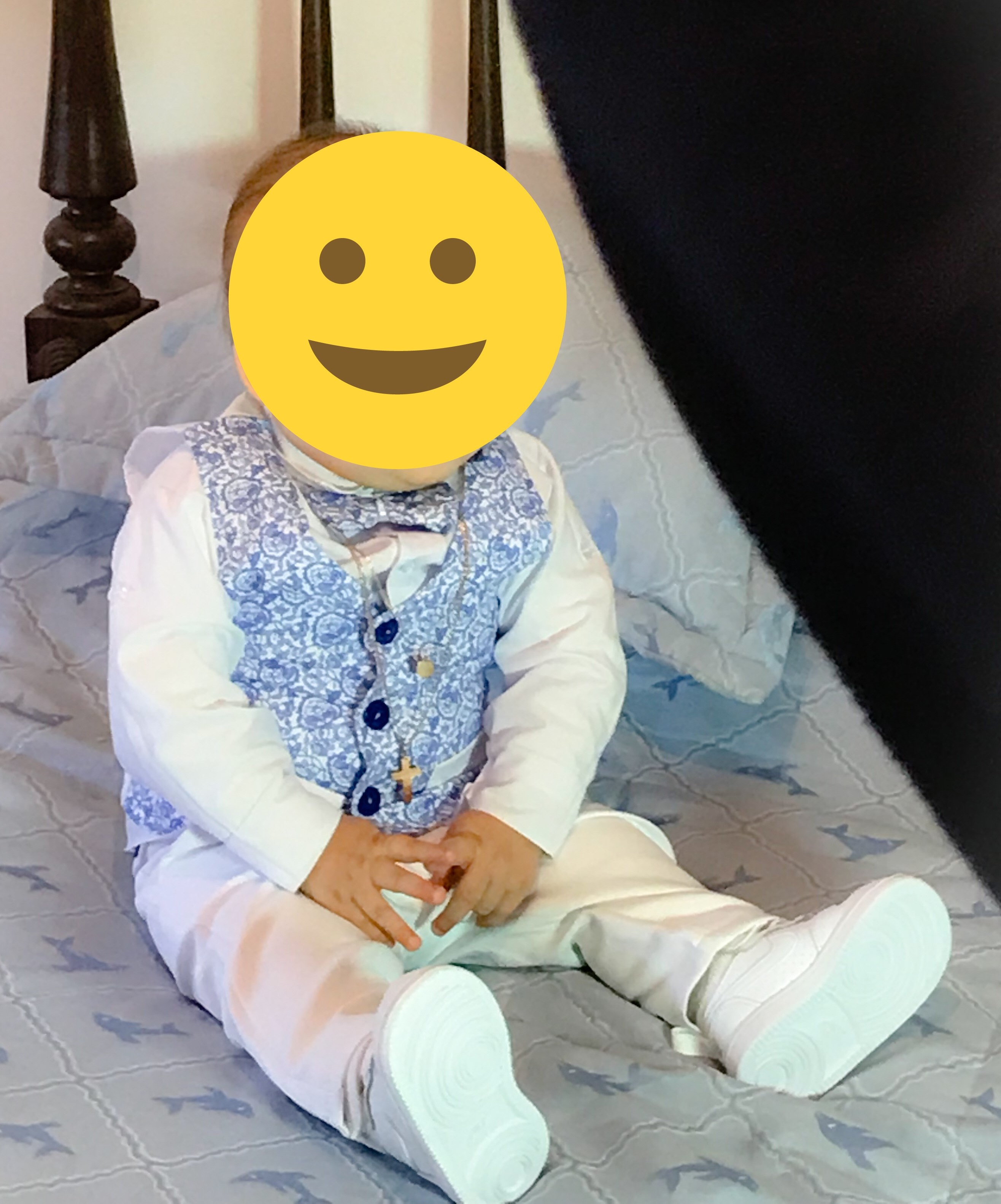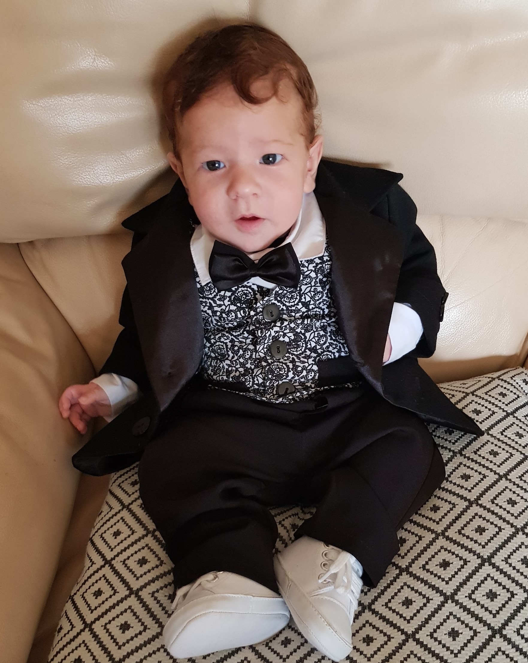 Costume parfait pour le baptême de notre fils Adrian 11 mois