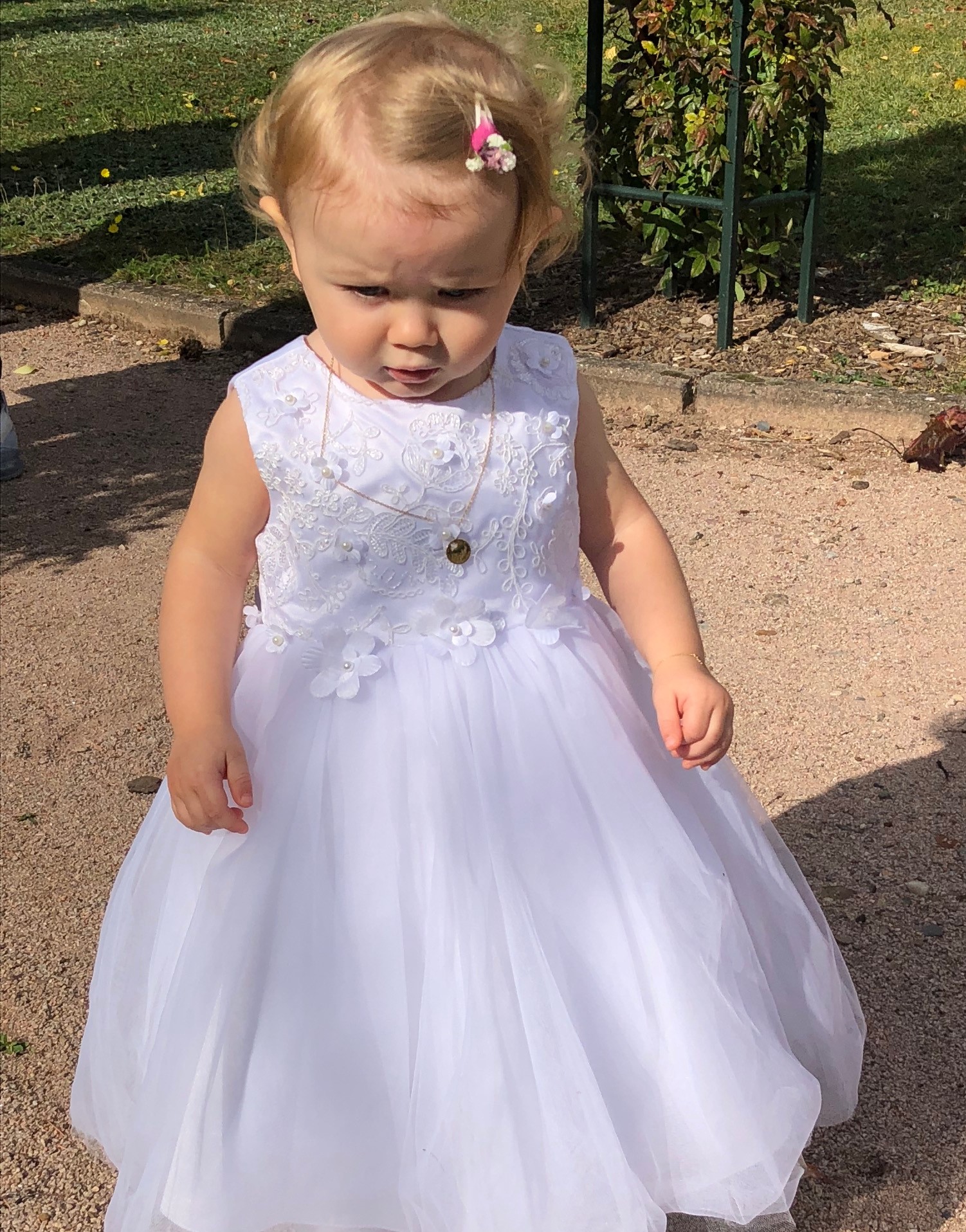 Ma princesse était tout simplement magnifique le jour de son baptême grâce à cette superbe robe commandée sur votre site, ainsi qu'au boléro. Aucun regret, ma fille a fait fureur auprès de nos invités. Merci Boutique Magique!