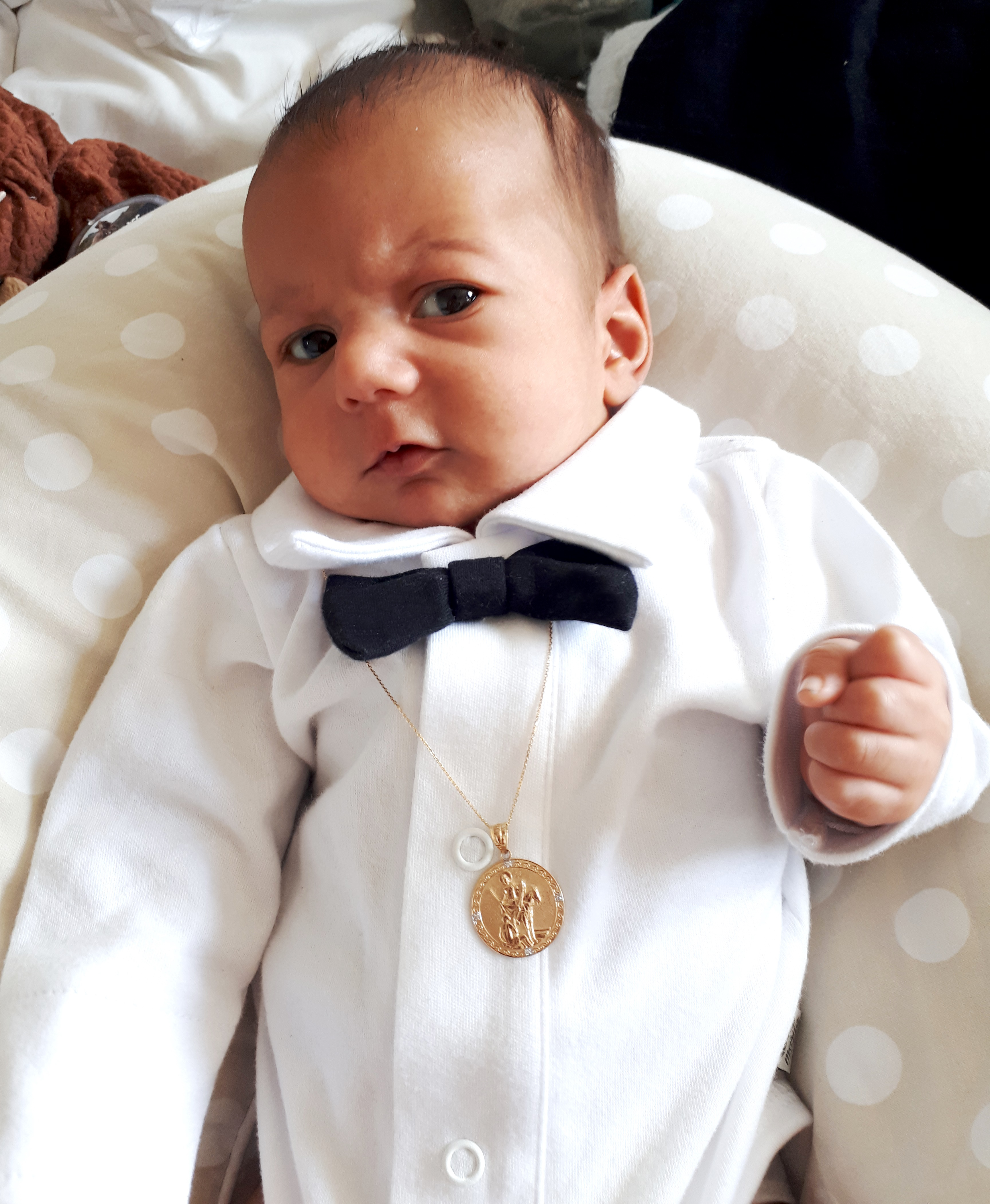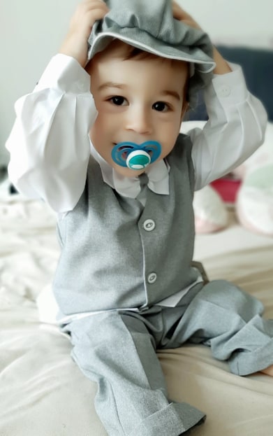 Costume top et adorable ! J'avais énormément de doutes concernant le choix de la taille pour un bébé qui avait presque 6 mois déjà mais les tenues taille parfaitement bien et à presque 7 mois la tenue lui va encore. Il était tellement adorable dans cette tenue pour son baptême. Je recommande et je commanderais à nouveau pour la prochaine occasion. Merci beaucoup !