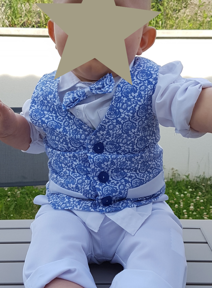 La tenue de mon fils a été au top , tout le monde a trouvé ça original . J’ai dû seulement faire des petites retouches chez la couturière car taille un peu grand. J’ai pris du 3 mois pour mon fils de 3 mois et demi .