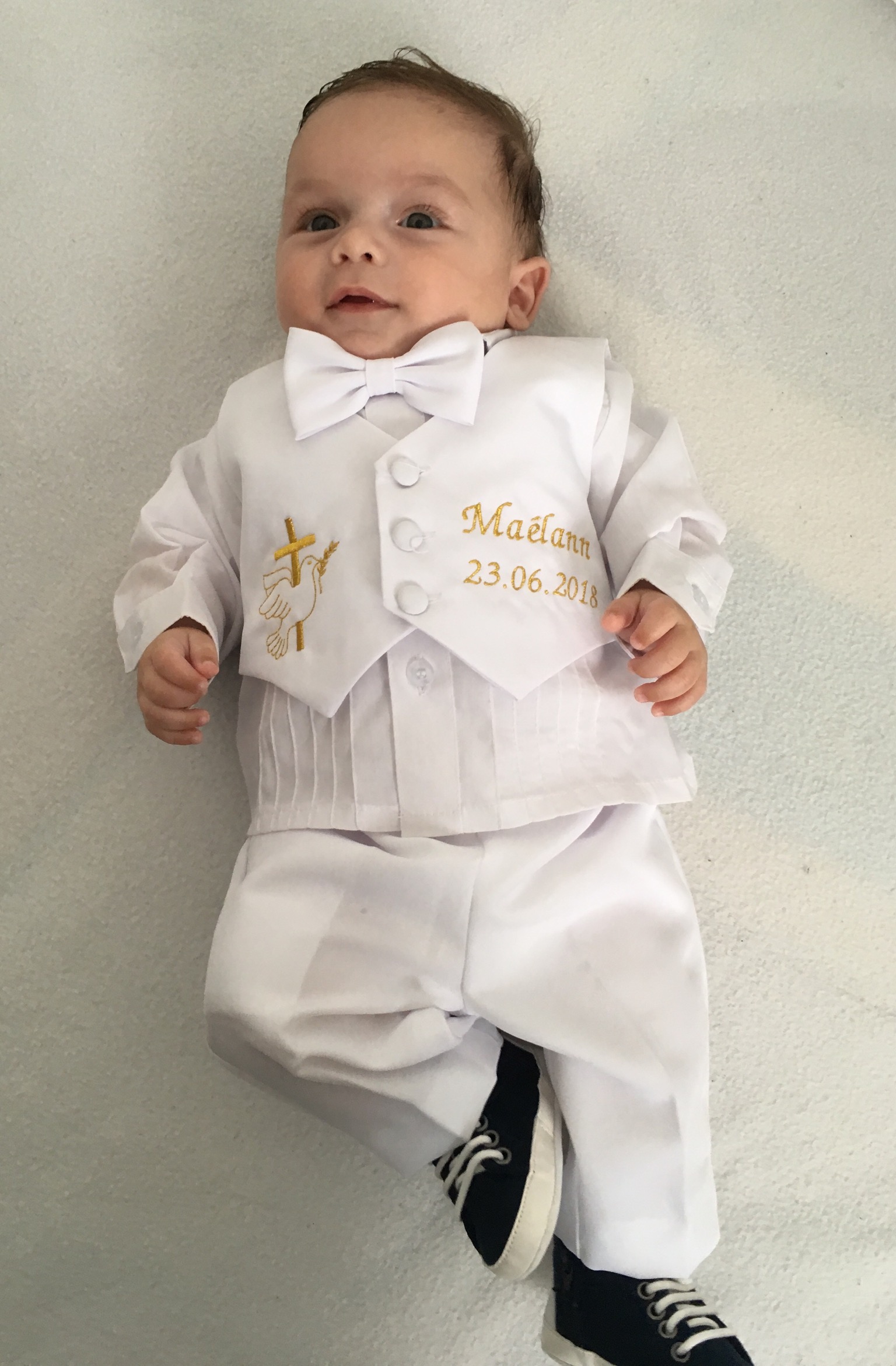 Trop beau mon grand loup dans son magnifique costume pour célébrer sa première communion. Et le gilet brodé superbe!